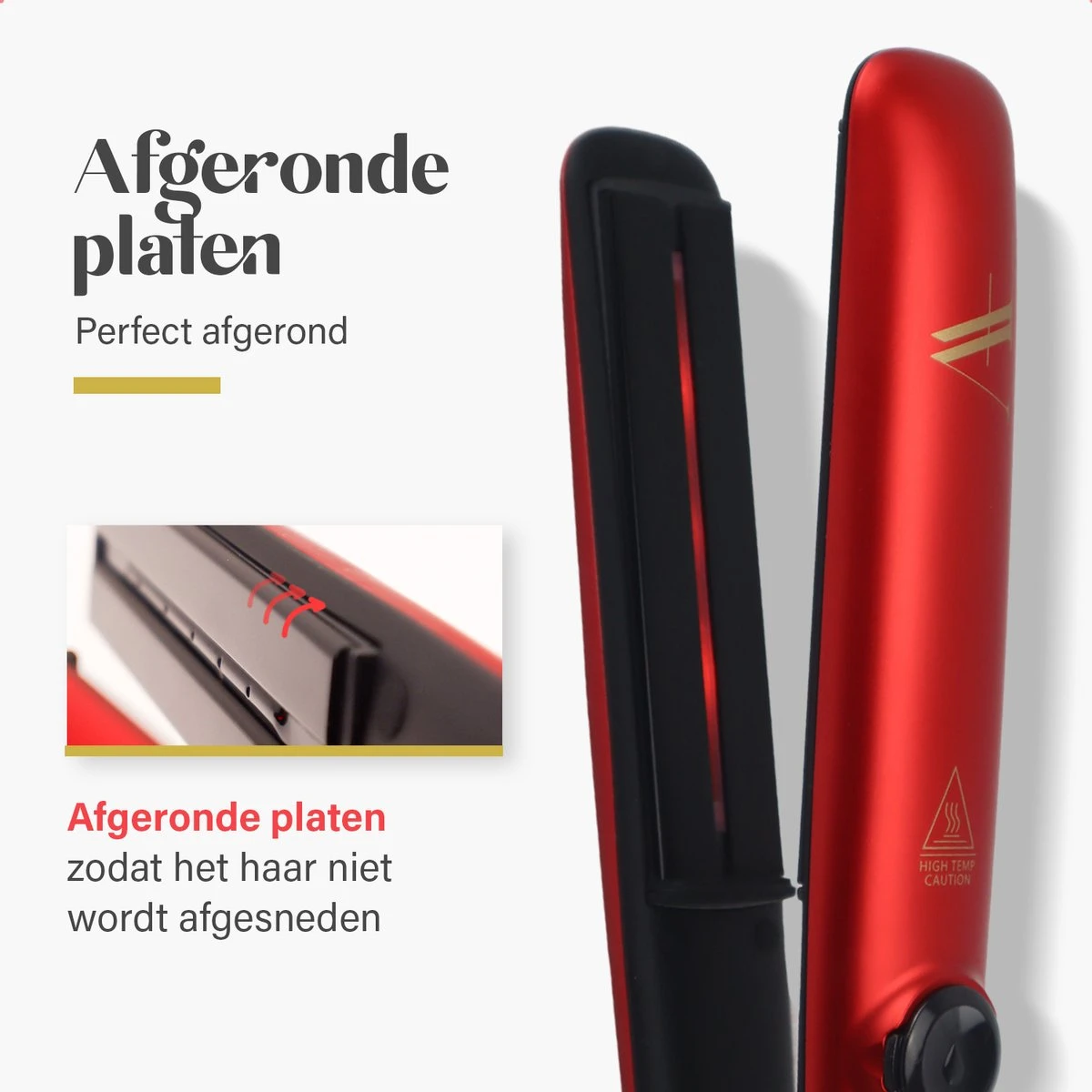 Om de voordelen van infrarood uit te leggen, duiken we als zelfbenoemde haarnerds even de details in. Infraroodwarmte geeft negatieve ionen vrij, waarmee je natuurlijke haaroliën gewoon op hun plek blijven. Daardoor voorkom je dat je haar pluizig wordt of nog erger: beschadigd raakt. Daarnaast dringt het ook nog eens diep tot in je haren door, waardoor je zelfs dikke lokken in een handomdraai steil krijgt. Wat een beetje rood licht al niet kan doen voor je haren!