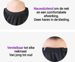 - Nauwsluitend: Sluit goed aan bij de nek, geen haren in de kleding