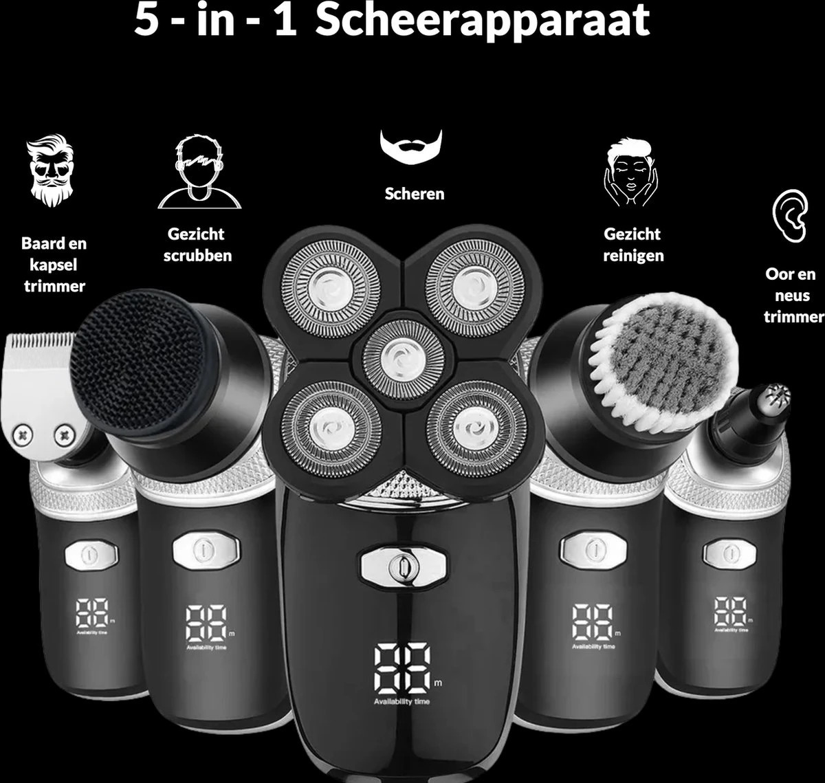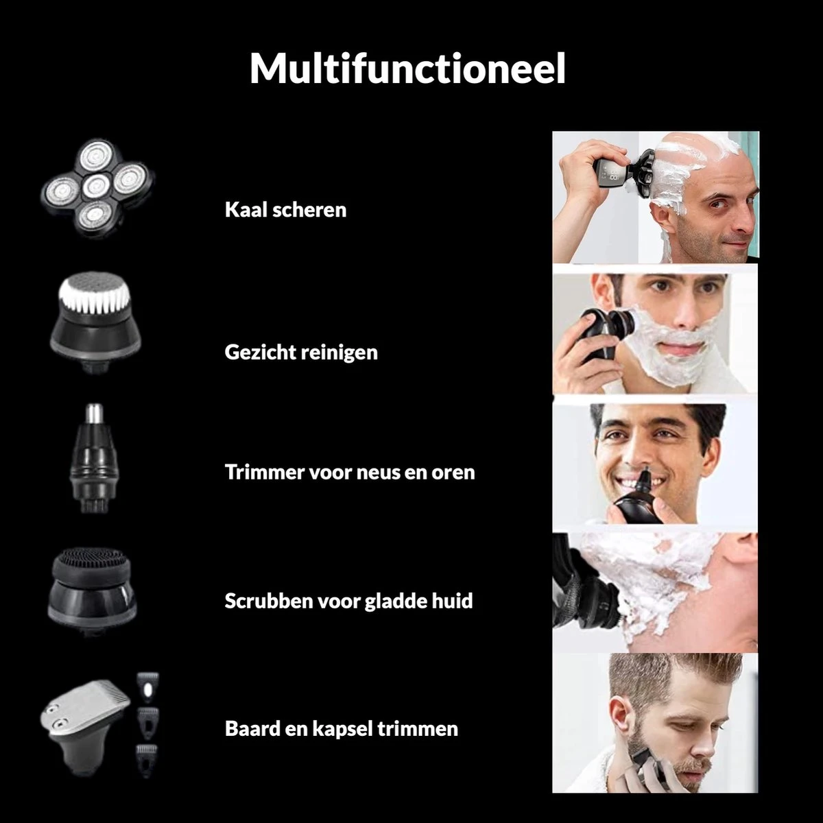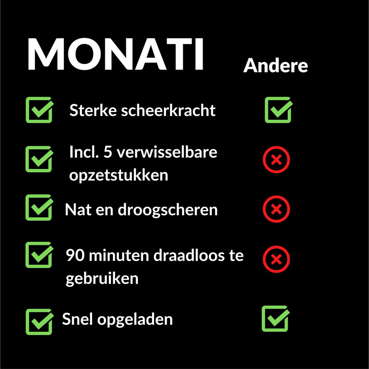 De Monati ® 5 in 1 Scheerapparaat set is een multifunctioneel product. U kunt niet alleen uw baard mooi glad en strak scheren, maar ook uw neushaar bijtrimmen en het scheerapparaat werkt ook als tondeuse. Het scheerapparaat is snel op te laden en gemakkelijk schoon te maken.