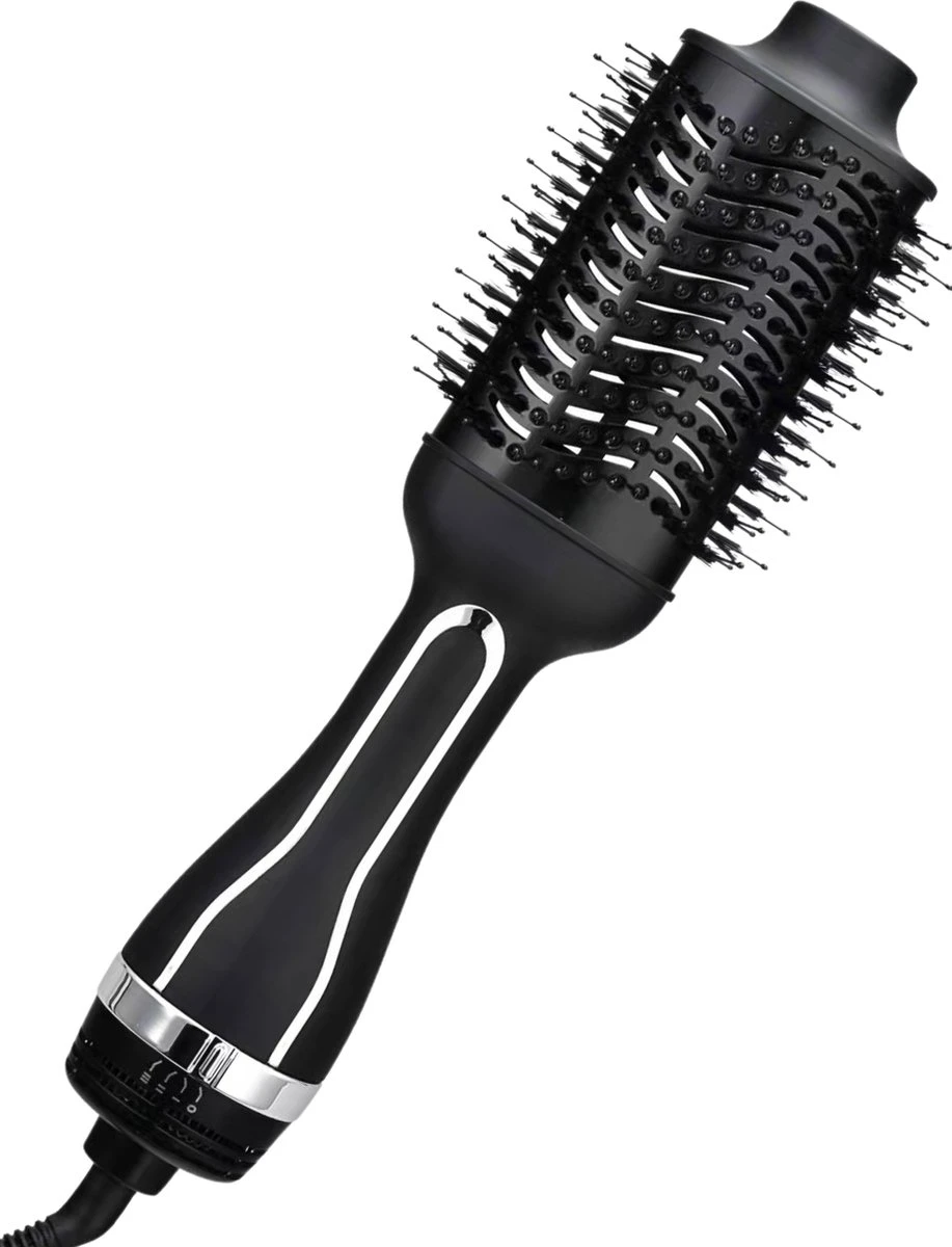 Föhn en Style je haar tegelijkertijd met de 3 in 1 föhnborstel. De borstel combineert een föhn, krulborstel en stijltang in één. Geschikt voor elk haar type, elke haardikte. Dankzij de 3 blaasstanden, waaronder zelfs een koude lucht stand. De borstel heeft een keramische coating, zodat je haar beschermd is tegen directe hitte. De ionische technologie voorkomt statisch en droog haar. Het halveert de tijd die je nodig hebt om je haar te drogen en te laten glanzen zonder pluis.