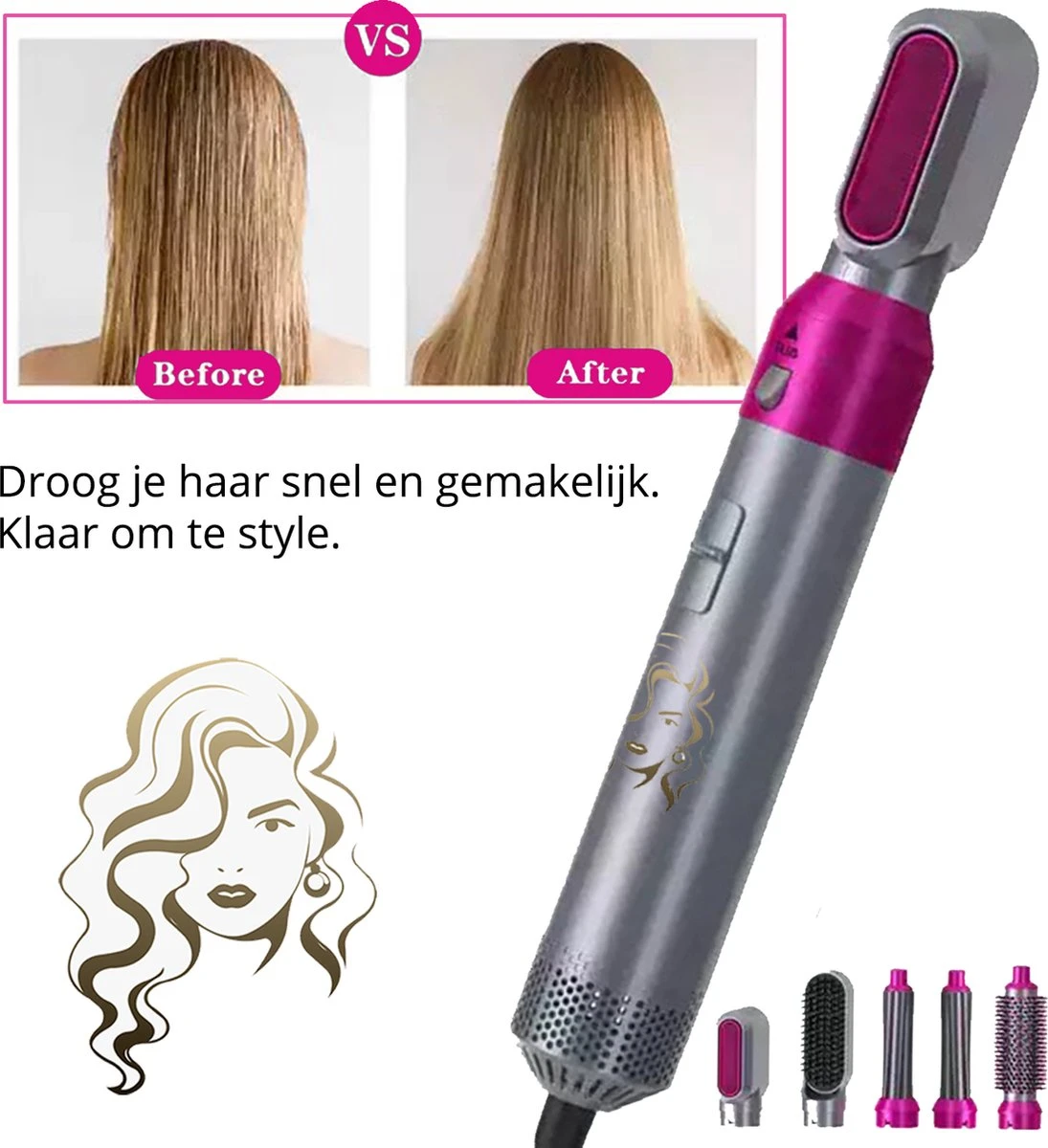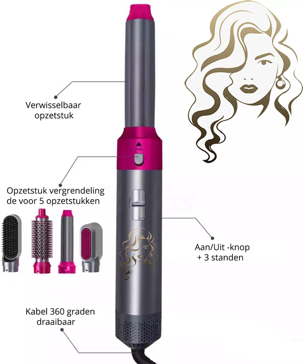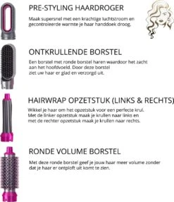 Wil jij ook het geheim weten van het creëren van de perfecte krul? Jouw haar keer op keer perfect stijlen, föhnen en eenvoudig in model brengen? Dit alles kan in een handomdraai met de MultiStylez 5-in-1 stijltang! Met een volumeborstel, stijlborstel, haardroger en een links- en rechtsdraaiend opzetstuk heb jij talloze mogelijkheden voor het in verzorgen en in model brengen van jouw kapsel.