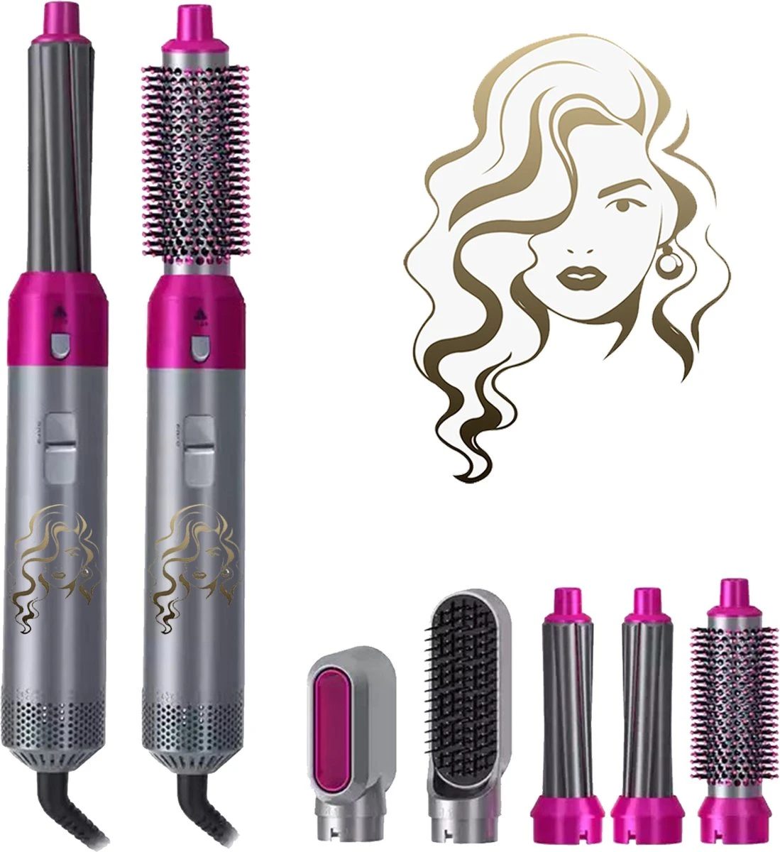 • Opzetstukken: volumeborstel, krultang (2x), stijlborstel en haardroger