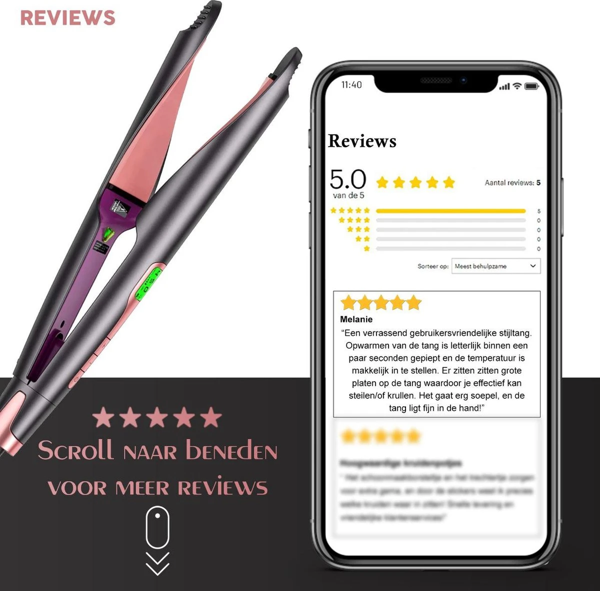 Druk vandaag nog op ‘in winkelwagen’ en ontvang je Nisha & Me stijl- en krultang snel in huis!