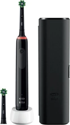 Ervaar de Oral-B Pro 3 van het nummer één meest gebruikte tandborstelmerk door tandartsen wereldwijd. Het slanke handvat van de Pro 3 elektrische tandenborstel helpt u te poetsen zoals uw tandarts dat aanbeveelt: Het helpt u 2 minuten poetsen met de professionele timer en meldt u om de 30 seconden dat u een andere zone moet poetsen. U beweegt de borstel gewoon in uw mond en de unieke, ronde borstelkop van Oral-B doet de rest. Hij verwijdert tot 100% meer tandplak dan een gewone manuele tandenborstel voor gezonder tandvlees en maakt uw glimlach witter vanaf de eerste poetsdag door oppervlakkige verkleuringen te verwijderen. Dat is niet alles, de tandenborstel helpt u ook uw gevoelige tandvlees te beschermen met de 360 ̊ poetsdrukcontrole die de poetssnelheid vermindert en u waarschuwt als u te hard poetst. De Oral-B Pro 3 tandenborstel is onmisbaar voor iedereen die naar een elektrische tandenborstel wil overschakelen en zijn mondgezondheid wil verbeteren.