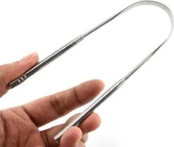 De tongschraper / tongreiniger is gemaakt van 100% RVS. Bovendien heeft de tongschraper een gebogen en glad oppervlak, waardoor u makkelijker achterin de mond kunt komen en u de tongschraper gemakkelijk kan schoonhouden.
