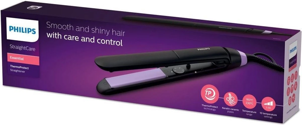 Speciaal ontworpen voor eenvoudig en snel stylen, met lange platen met keratine en tien temperatuurinstellingen. Jouw haar wordt beschermd tegen oververhitting dankzij ThermoProtect-technologie.