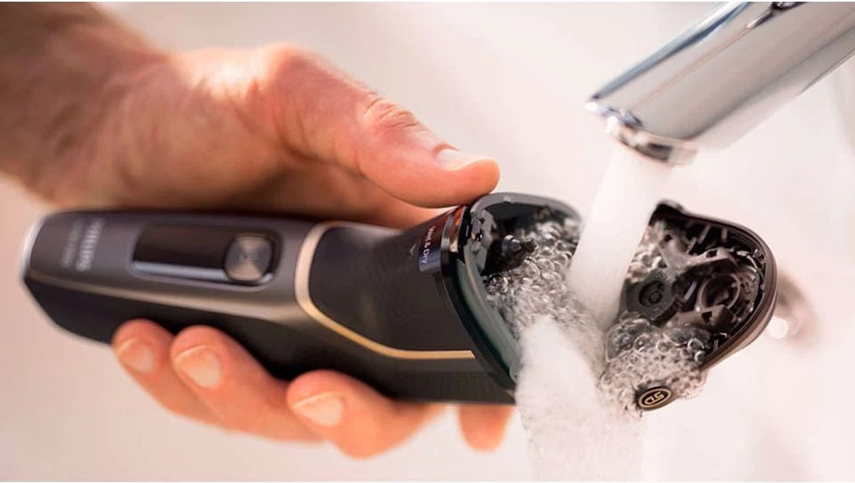 Het scheerapparaat kan gemakkelijk worden gereinigd. Met één druk op de knop open je het scheerhoofd en spoel je dit met water af.