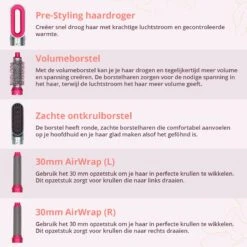 – 1x Föhn- 1x Krulborstel- 1x Stijlborstel- 1x Hittebestendige handschoen- 2 x Airwrap opzetstuk