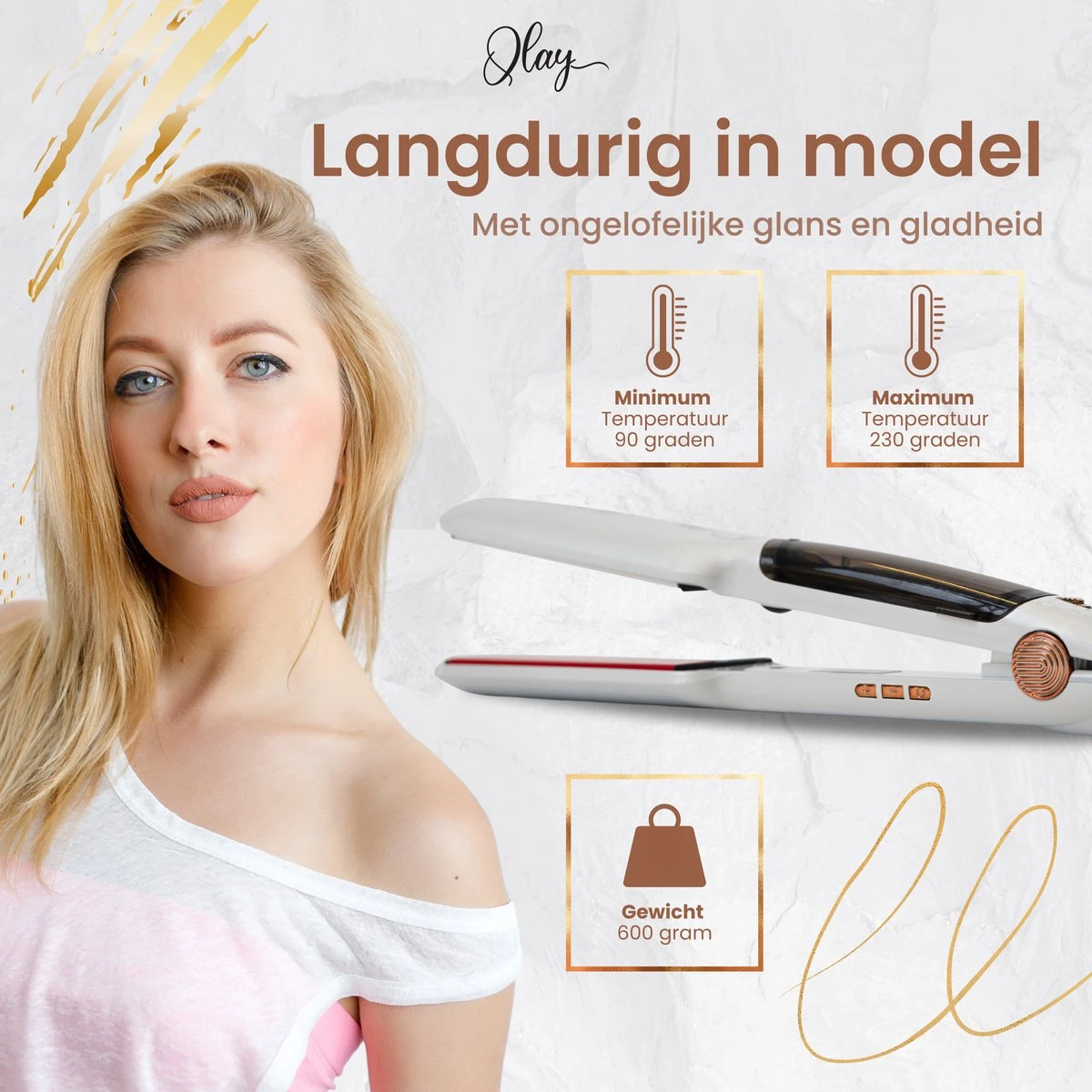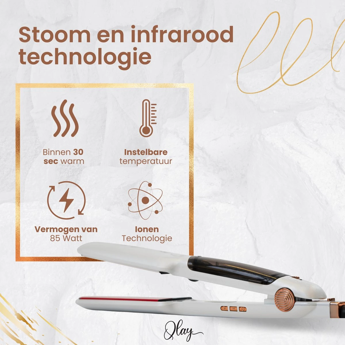 Jouw haarstijl langer en mooier in model houden? De QLAY steampod 3.0 geeft elk haartype meer glans en gladheid. 90% veiliger dan normale stijltangen en transformeert haar zonder beschadigingen. Binnen 30 seconden al op temperatuur zodat jouw kostbare tijd niet verloren gaat! Dus het perfecte cadeau voor je vriendin, moeder, of jij zelf !!!