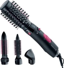 De 1000 Watt heteluchtborstel is ideaal voor drogen van langer haar en creëert textuur, volume en een golvende beweging.