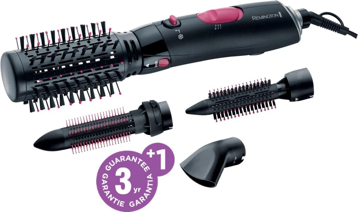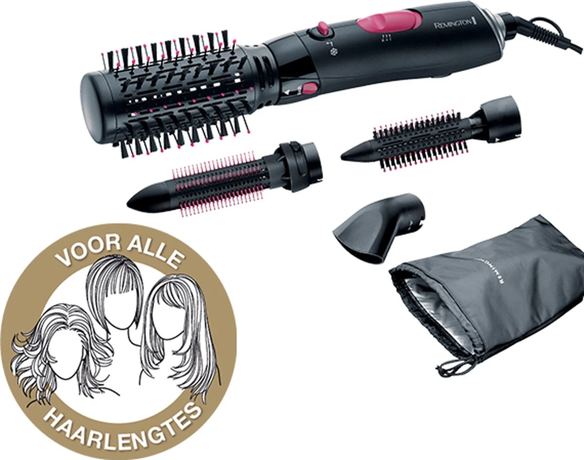 Wil jij je haar iedere dag van de week omtoveren tot een ander kapsel? Dan is de Remington Volume & Curl Föhnborstel je nieuwe beste vriendin! Deze 4-in-1 stylingkit is alles wat je nodig hebt voor zijdezachte glanzende lokken, grote veerkrachtige krullen of een sexy golvende beweging. Deze föhnborstel is voor elke haarlengte geschikt dankzij de verschillende opzetstukken.