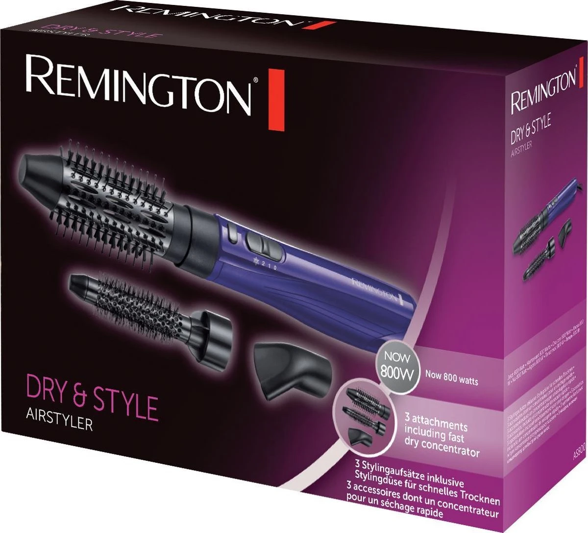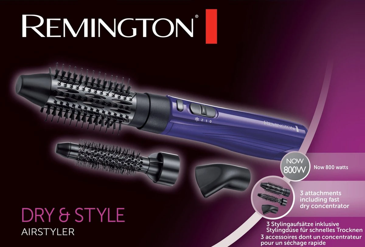 De Remington Dry & Style heeft drie slimme hulpstukken, waarmee je je haar tegelijkertijd kunt föhnen en in model kunt brengen voor een schitterend en oogverblindend resultaat in een handomdraai.