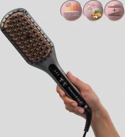 De Keratin Protect Straight Brush is borstel en stijltang in één, speciaal ontworpen voor tijdbesparend stylen. Steil en stijlvol: bereik je unieke look in een handomdraai, zonder risico op beschadigingen.