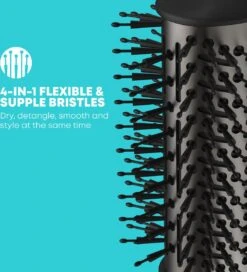 Heb je weinig tijd in de ochtend? Dan is deze elektrische ronde borstel ideaal voor jou. Deze 4 in 1 haar styler is een volume borstel en föhnborstel in 1 en kan daarnaast ook het haar ontwarren en steil maken. De borstel wordt bovendien geleverd met twee opzetborstels. De eerste borstel is 46 millimeter bij 72 millimeter en ideaal voor langer en voller haar. Is je haar iets korter of fijner? Dan is de kleinere borstel ideaal, met een afmeting van 37 millimeter bij 58 millimeter. Dankzij de verschillende warmte- en snelheidsstanden kun je de föhnborstel voor ieder haartype gebruiken en heb je gegarandeerd een mooi resultaat.
