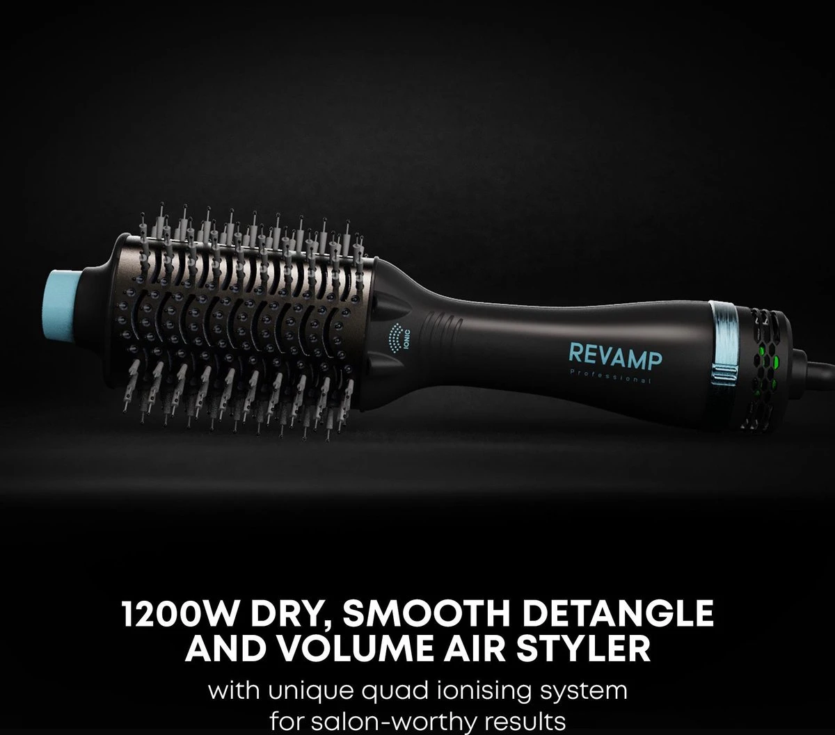 - 1200 W droge, gladde, ontwarrende en volume-airstyler met een uniek quad-ionisatiesysteem voor salonwaardige resultaten