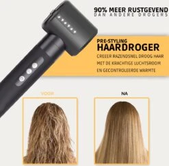 Een van de belangrijkste voordelen van de Airwrap is de mogelijkheid om het haar te stylen met minder hitte dan traditionele stylingtools. Dit betekent dat je dezelfde salonkwaliteit kunt bereiken zonder schade aan je haar te veroorzaken, wat vooral belangrijk is voor mensen met fijn of beschadigd haar. Met de Airwrap kun je het hele jaar door gezond en mooi haar hebben.