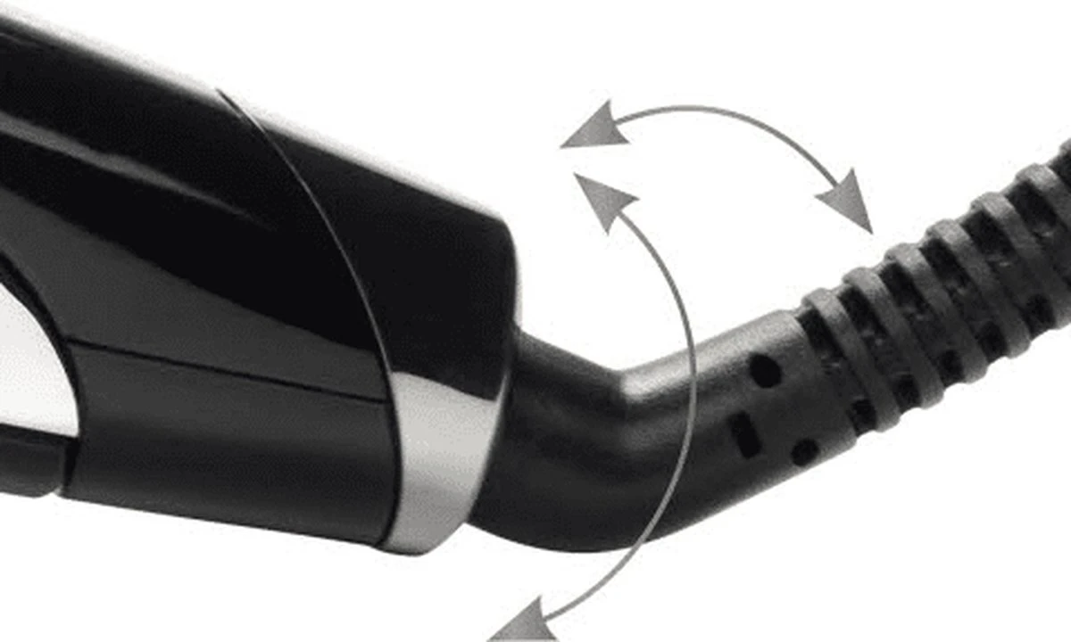 Ergonomische stijltang met lange zwevende plaatjes uit titanium met een spiegelafwerking – 3m kabel met innovatieve 360°/3D meedraaiende contact verbinding.