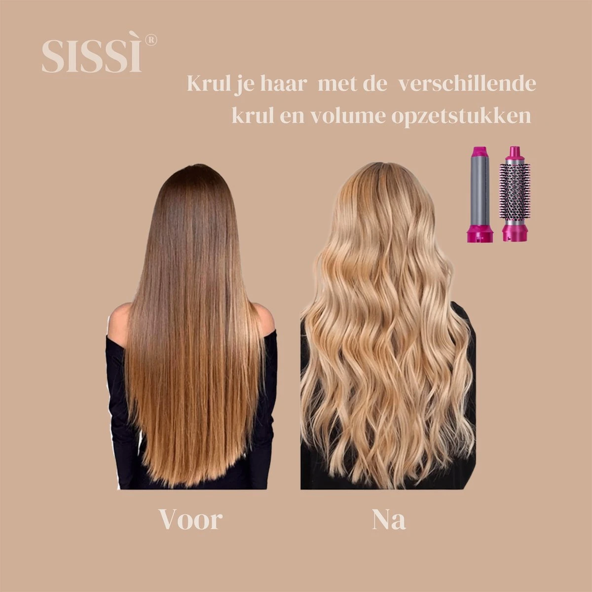 Bestel vandaag de Sissì® Airwrap en creeer elke dag de gewenste haar resultaat vol volume, glans en prachtige krullen. Elke dag vol zelfvertrouwen, want je haar zit goed!