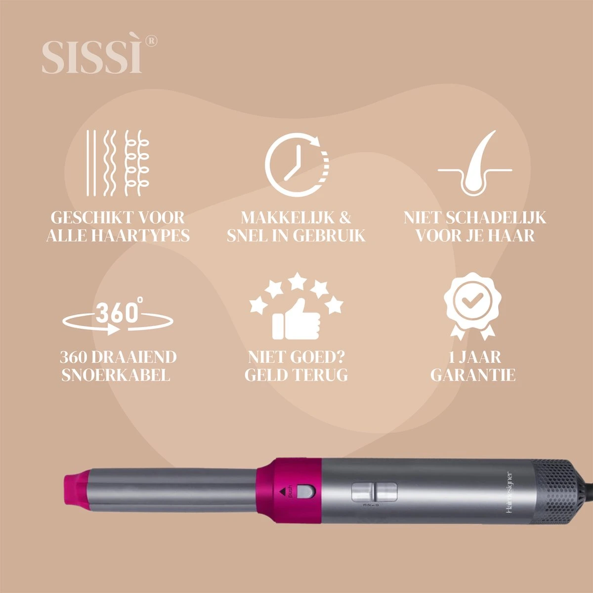Wil jij ook de perfecte krul, mooi golvend haar of juist super stijl haar, dan is de allernieuwste versie van de 5 in 1 Airwrap van Sissì® echt iets voor jou! Binnen no time heb je de perfecte blow out. Niet meer de deur uit naar de kapper maar gewoon thuis voor de spiegel!