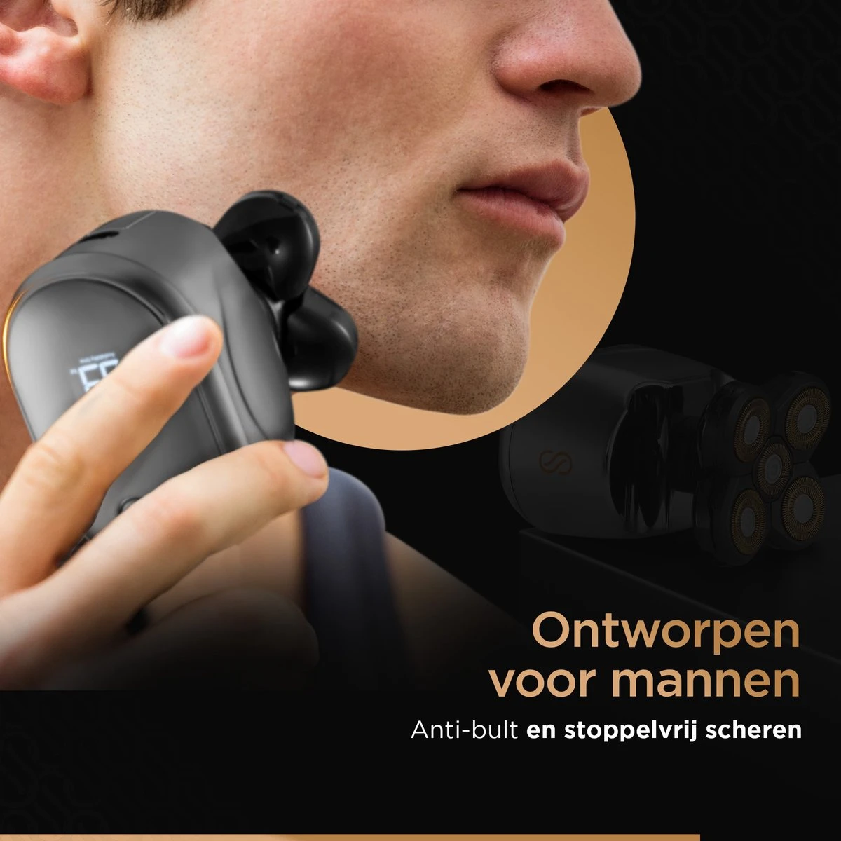 Wat ons scheerapparaat uniek en speciaal maakt is het design. Het scheerapparaat is zo ontworpen dat die makkelijk in de hand ligt en je flexibel te werk gaat. De innovatieve ergonomische handgreep biedt een goede grip wat perfect in de hand ligt voor comfortabel en intuïtief scheren van uw hoofd en gezicht. Dankzij het unieke ontwerp komt het scheerapparaat gemakkelijk op alle moeilijk bereikbare plaatsen voor onberispelijke resultaten.