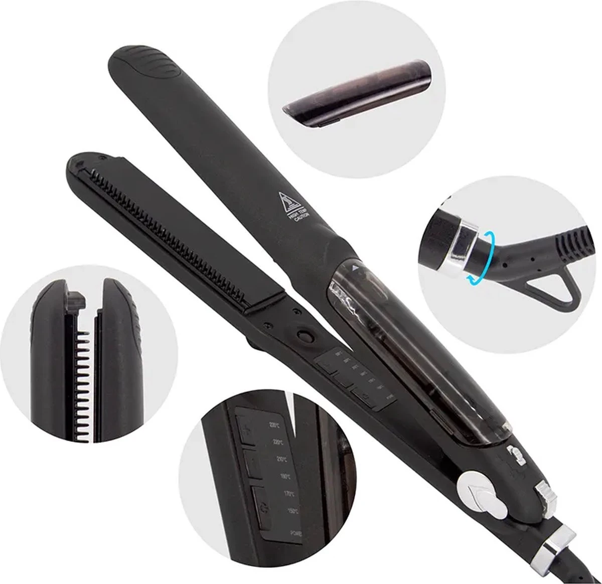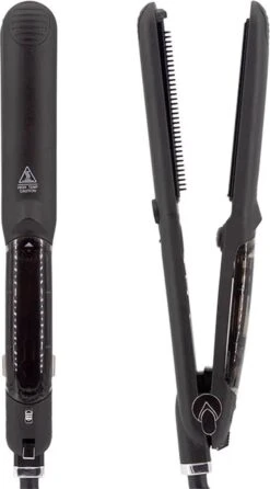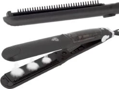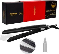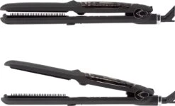 In tegenstelling tot vele stijl en krultangen maakt deze stijltang gebruik van stoom. Deze stoom verhit de haren op een veiligere manier. De stoom hydrateert ook de haren en voorkomt zo uitdroging en pluizig haar. Dacht je dat we piekte met infrarood? De Steammie Pro heeft nóg een interessante eigenschap, namelijk de microstoom functie. Zie het als de ultieme dorstlesser voor droge lokken, waarmee je de kleinste krullen steil kan maken. Met één druk op de knop til jij je styling sessie naar een stomend hoogtepunt.