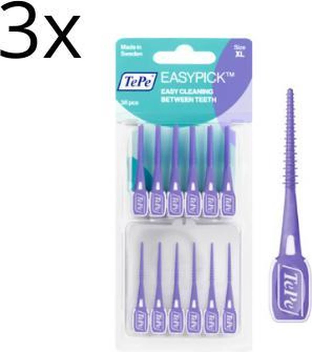 TePe EasyPick is de volgende generatie tandenstokers, conisch gevormd met nu drie overlappende maten. Dagelijks gebruik houdt het tandvlees, tanden en kiezen gezond en fris. TePe EasyPick™ is een eenvoudige en efficiënte manier om tussen de tanden te reinigen. De unieke combinatie van de materialen maakt de TePe EasyPick™ flexibel, duurzaam en comfortabel in gebruik. TePe EasyPick XL is specifiek bedoeld voor grotere interdentale ruimtes.