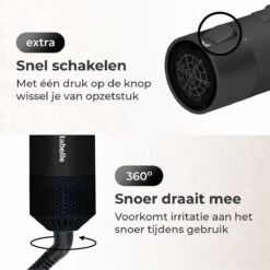 - 6 opzetstukken (2x krul, grote en kleine volumeborstel, fohn opzetstuk, gladmakende borstel)