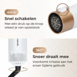Wil jij je haar droogmaken, gladföhnen, krullen, meer volume geven of op een andere manier stijlen? De Tutabelle airwrap kan het allemaal. Door de 6 verschillende opzetstukken kun jij je haar in ieder gewenste staat krijgen, zonder pluizen. De Tutabelle is vergelijkbaar met de originele Dyson, maar dan voor een fractie van het geld.