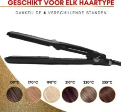 Geschikt voor alle haartypes, of je nou dik, dun, krullend, stijl of kroes haar hebt, deze stijl en krultang is voor elk haartype geschikt. Tussen de verschillende standen vind je welke temperatuur het beste is voor jouw type haar en haar conditie, om het gewenste resultaat te krijgen.