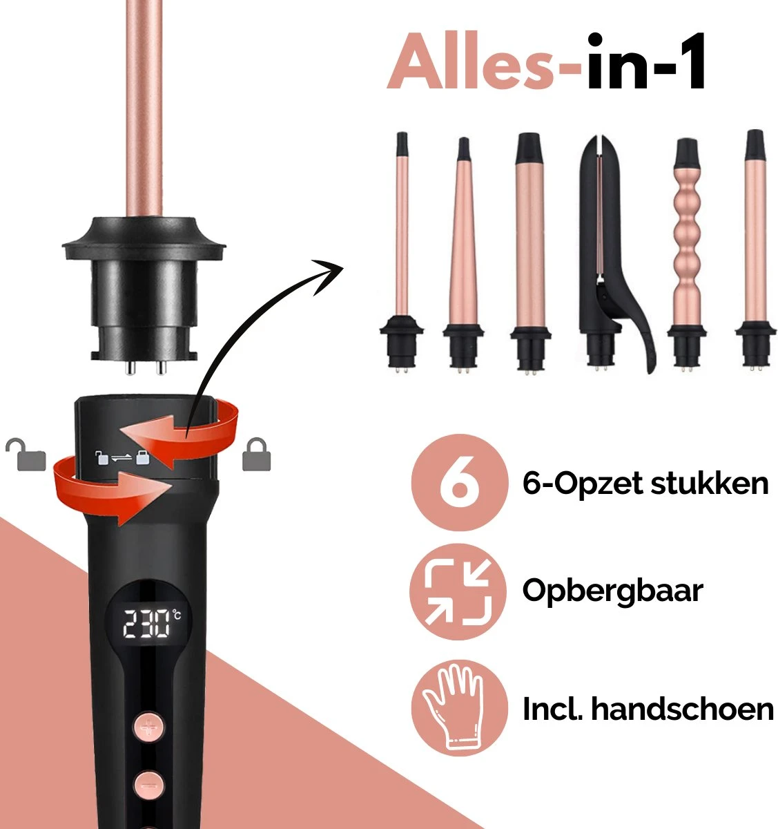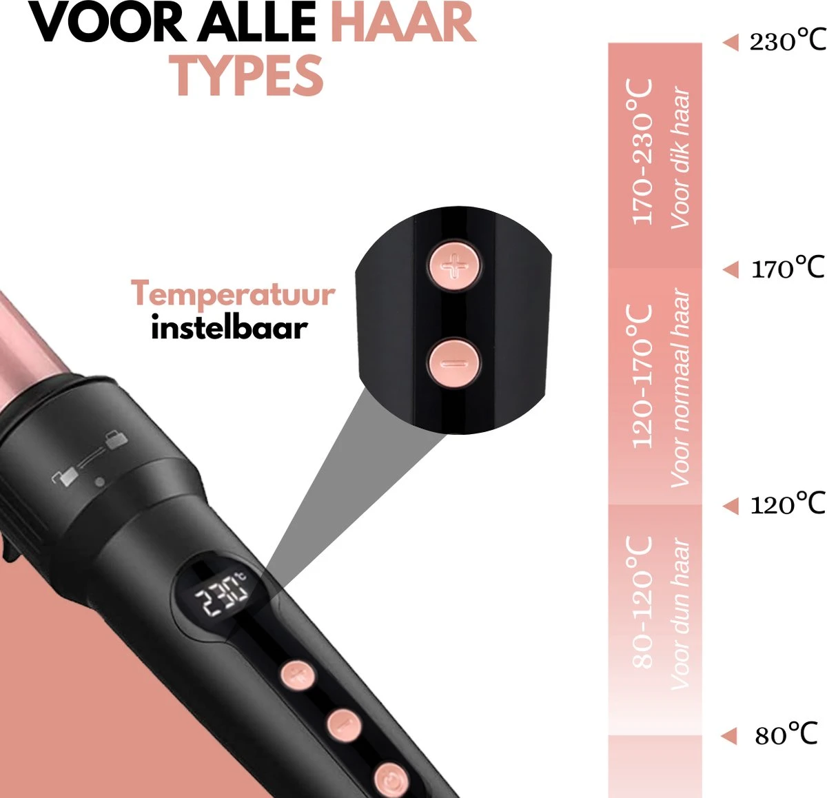 Ontdek het nieuwste geheim achter de perfecte krullen of glanzend steil haar: de alles in een multistyler. Vergeet het gebruik van losse stijltangen en krultangen en wees op elk moment verzekerd van de juiste styling tools. Gebruik de krultang voor het stijlen van je haar en het indraaien van je curl of experimenteer eindeloos met de vele krultang opzetstukken.