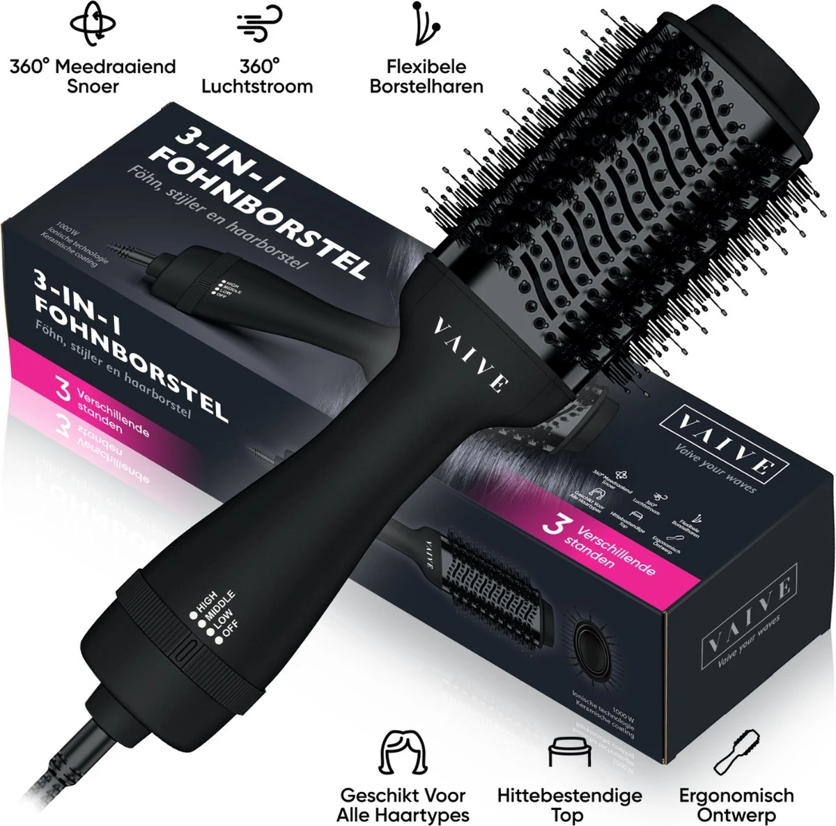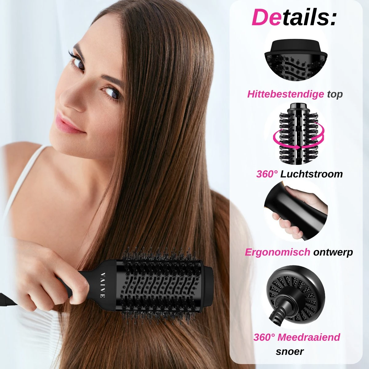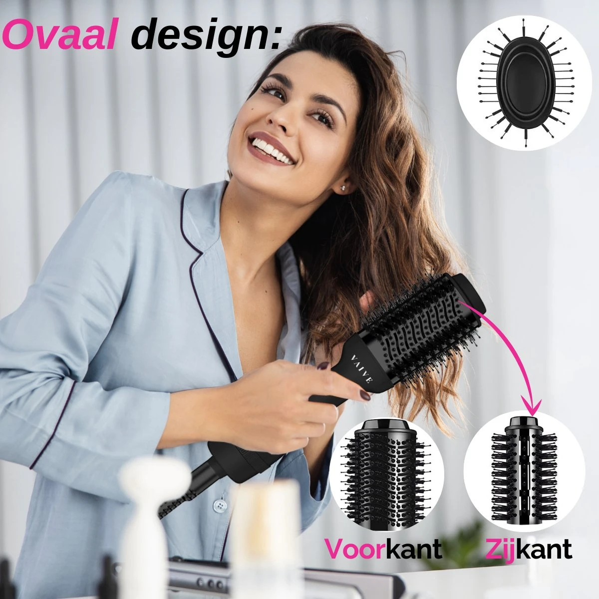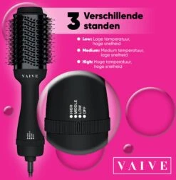Halveer direct de tijd die je nodig hebt om je haar te drogen en te stijlen. De Föhnborstel van VAIVE stylet, droogt en maximaliseert het volume in je haar in slechts één stap. De lange kant van het ovale design werkt wonderen voor het gladkrijgen van je haar. De rondingen zijn ideaal om volume en krullen te creëren waar iedereen naar verlangt.