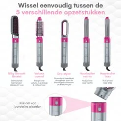 Bij de airwrap krultang worden 5 verschillende opzetstukken geleverd. Hierdoor heb je veel