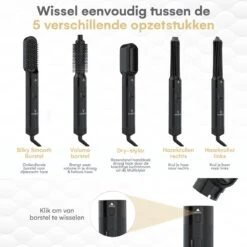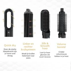 Bij de airwrap krultang worden 5 verschillende opzetstukken geleverd. Hierdoor heb je veel