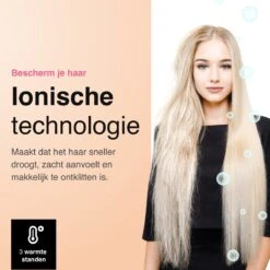 De ionische technologie in onze föhnborstel zorgt ervoor dat jouw haren tijdens het drogen omhult worden door negatieve ionen. Dit betekend dat er als het ware een schild ontstaan voor je haar. Tijdens föhnen worden je haren beschermd tegen warme lucht en worden positief geladen watermolecule sneller afgevoerd. Het drogen zal hierdoor sneller gaan maar het zorgt er ook voor dat je haar niet uitdroogt, niet statisch wordt en zeker niet gaat pluizen!