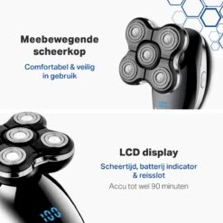 Het scheerapparaat werkt op een 600 mAh lithium batterij die in 90 minuten volledig kan worden opgeladen met de bijgeleverde USB-kabel waarna je weer 60 tot 90 minuten draadloos kan scheren. Wil je weten hoever je apparaat is opgeladen? Dit kan je gelukkig eenvoudig zien op het LCD scherm.