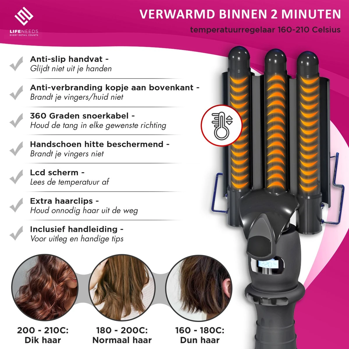 De Wafeltang Deluxe is een innovatie op het gebied van haarstyling. Deze krultang heeft drie verschillende tangen die samen werken om jouw haar op een prachtige manier te stijlen of te krullen.