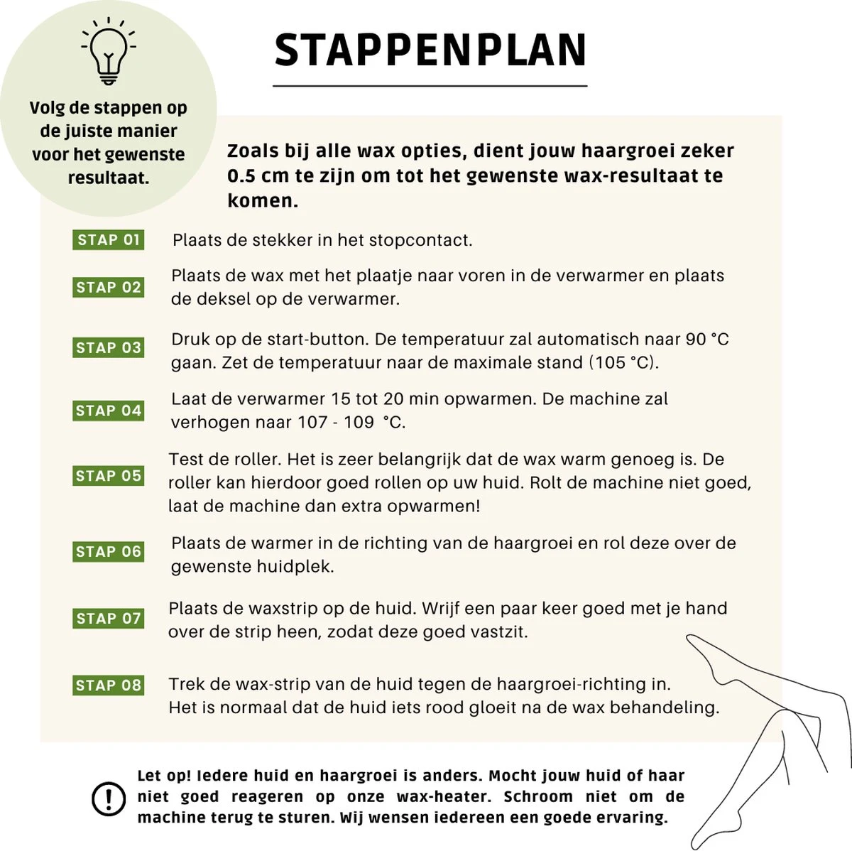 Let op! Het is belangrijk dat je je huid goed schoonmaakt voordat je begint met waxen. Zo voorkom je ingegroeide haren en ontstekingen. Onze tip: begin 3 dagen van tevoren met scrubben.