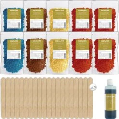 Onze ontharingswax wordt in Europa gemaakt. In deze set zitten 10 zakjes van 100 gram. Na het ontharen heeft u een mooie en gladde huid. Wij hebben onze wax iets dikker gemaakt dan de gemiddelde ontharingswax met als gevolg dat ALLE haren makkelijk verwijderd kunnen worden. Geschikt voor droge, gevoelige en vette huid. De afneembare wax en de kalmerende olie zijn gegarandeerd van Europese Fabricatie en geregistreerd bij CPNP (=Cosmetic Products Notification Portal)