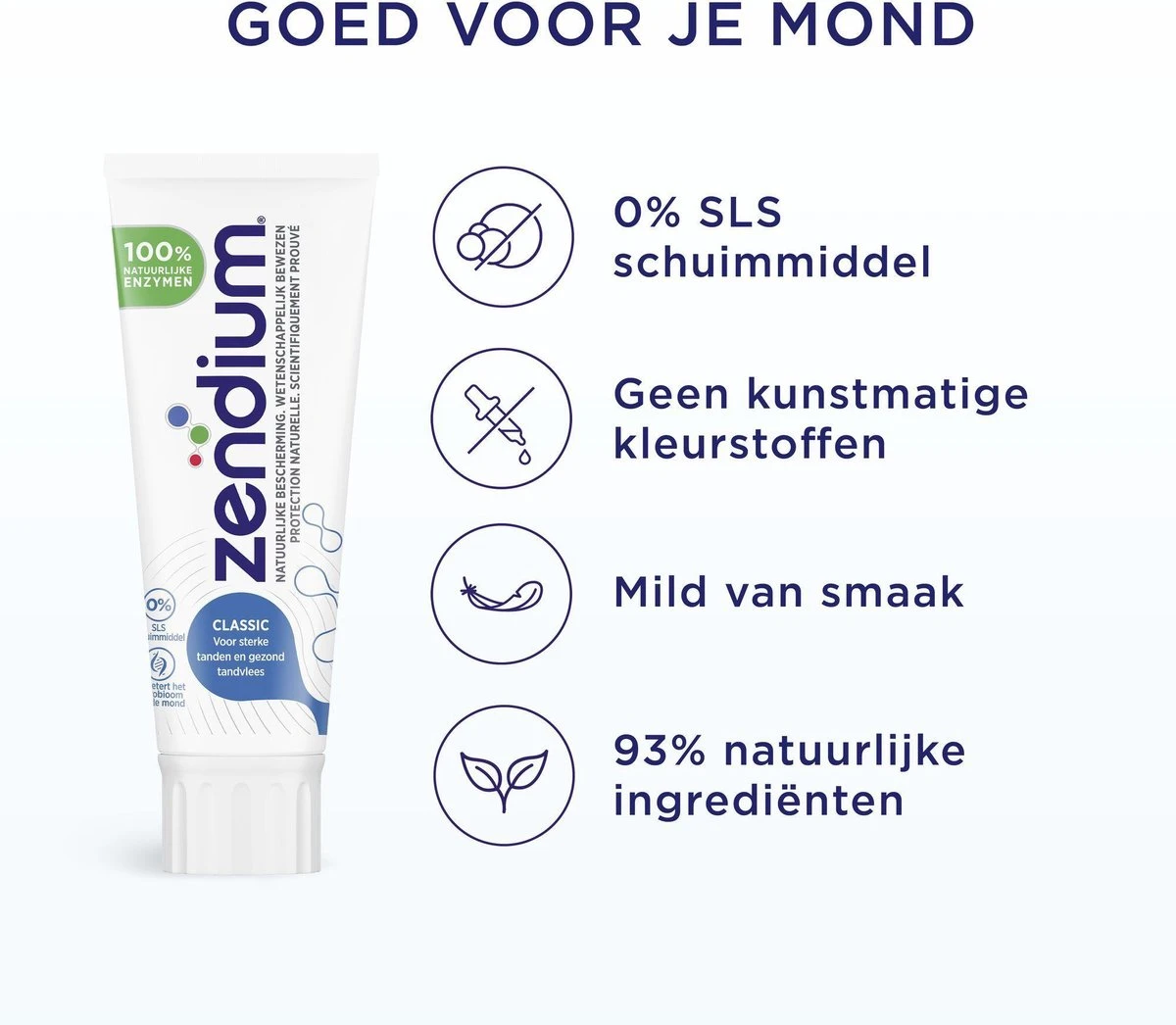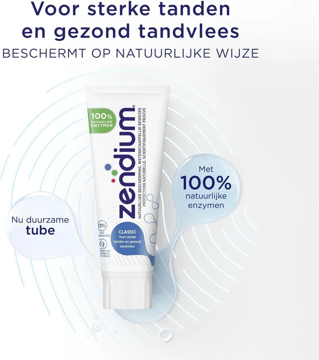 - Zendium Classic tandpasta bevat 100% natuurlijke enzymen